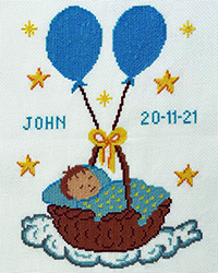 sisältää kankaan,langat, neulan ja ohjeet | sisältää kankaan,langat, neulan ja ohjeet | Vauva korissa, punainen | Seisova vauva |