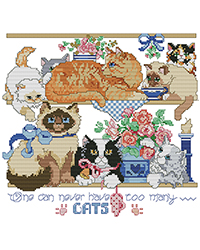 | Ristipistopakkaus, kissa 51 x 42 cm | Ristipistopakkaus, kissa ja hiiri 22 x 24 cm | Ristipistopakkaus, kissa ja perhonen 50 x 52 cm | Ristipistopakkaus, kissoja 44 x 42 cm |