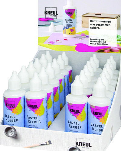 Soveltuu paperin, pahvin, tekstiilien, huovan, nahan, korkin, puun, lasin, kuivattujen ja silkkikukkien, polystyreenin ja monien muovien liimaamiseen Vesipohjainen Kuivuu kirkkaaksi Liuotinvapaa